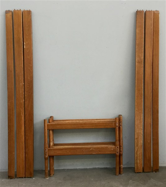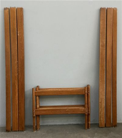 Coppia di letti singoli con struttura in legno. Italia, secolo XX. (difetti)