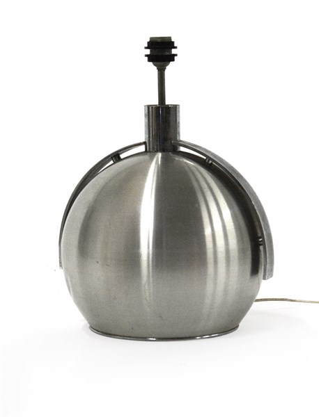 Lampada da tavolo di forma sferica in alluminio spazzolato. Italia, anni '70. (h cm 50; d cm 40) (difetti)