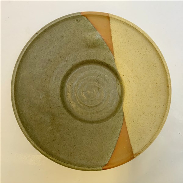 Centrotavola in ceramica smaltata nei toni del grigio, beige e marrone. Italia,