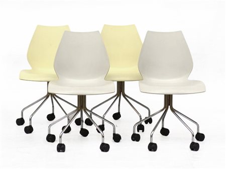 Vico Magistretti Quattro sedie con rotelle modello "Maui". Produzione Knoll, USA