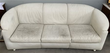 Divano a tre posti imbottito e rivestito in pelle bianca. Italia, anni '80. (cm 230x80x100) (difetti)