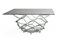 Tavolo con base in cristallo sagomato a caldo con bordi acidati, piedini in all