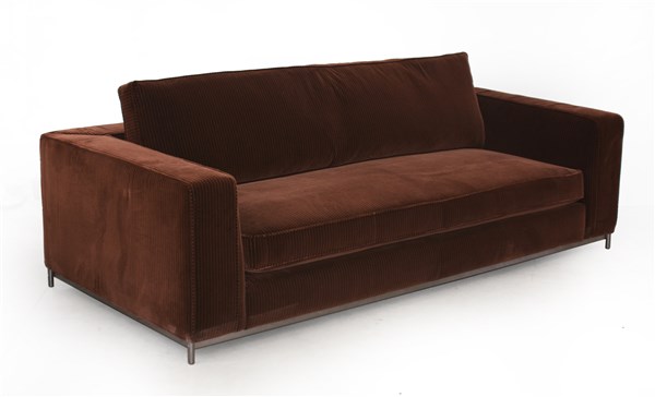 Lotto 2520 | Divano a tre posti imbottito e rivestito in velluto a coste marrone. Italia, an