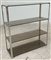 Libreria a giorno con montanti in metallo cromato e quattro ripiani in vetro fu
