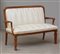 Divanetto a due posti con struttura in legno massello, seduta e schienale imbottiti e rivestiti in finta pelle bianca. Italia, prima metà secolo XX. (cm 138x99x60) (lievi difetti e restauri)