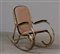 Dondolo con struttura in metallo ottonato e legno verniciato nero, seduta e schienale in alcantara beige. Italia, anni '70. (cm 51x82x96) (difetti)