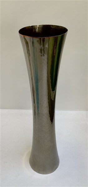 Vaso in rame argentato. Padova, anni '90/2000. Firmato sotto la base. (h cm 40; d cm 9,5) (difetti)