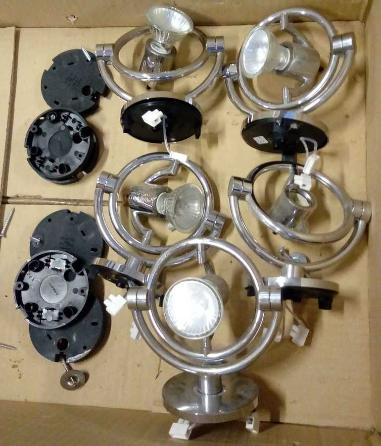 Lotto composto da cinque minifari da parete e soffitto in alluminio cromato. Produzione Cini & Nils, Milano, anni '90. Alluminio cromato. Recanti marchio della produzione. (l cm 13) (lievi difetti)