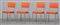 Lotto composto da quattro sedie con struttura in tubolare metallico, seduta e schienale imbottiti e rivestiti in similpelle rossa con bordino bianco. Italia, anni '70. (cm 40x80x51) (lievi difetti)