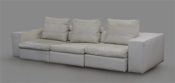 Divano a tre posti modello "Skate". Italia, produzione recente. Pelle bianca. (cm 301x54x100) (lievi difetti)