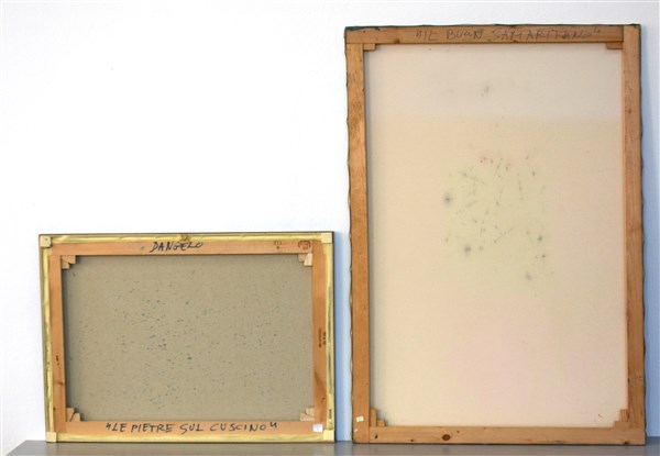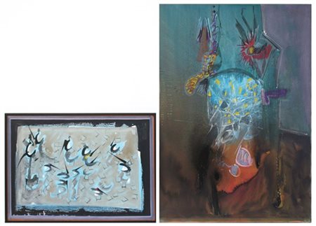 Sergio Dangelo Lotto di due opere: "Il buon samaritano" olio su tela, cm 100x70