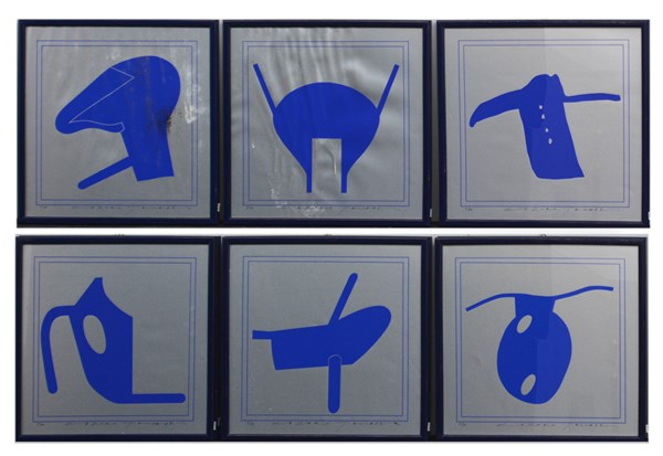 Kazuro Tanabe "Senza titolo" sei serigrafie blu su carta metallizzata cm 39x39