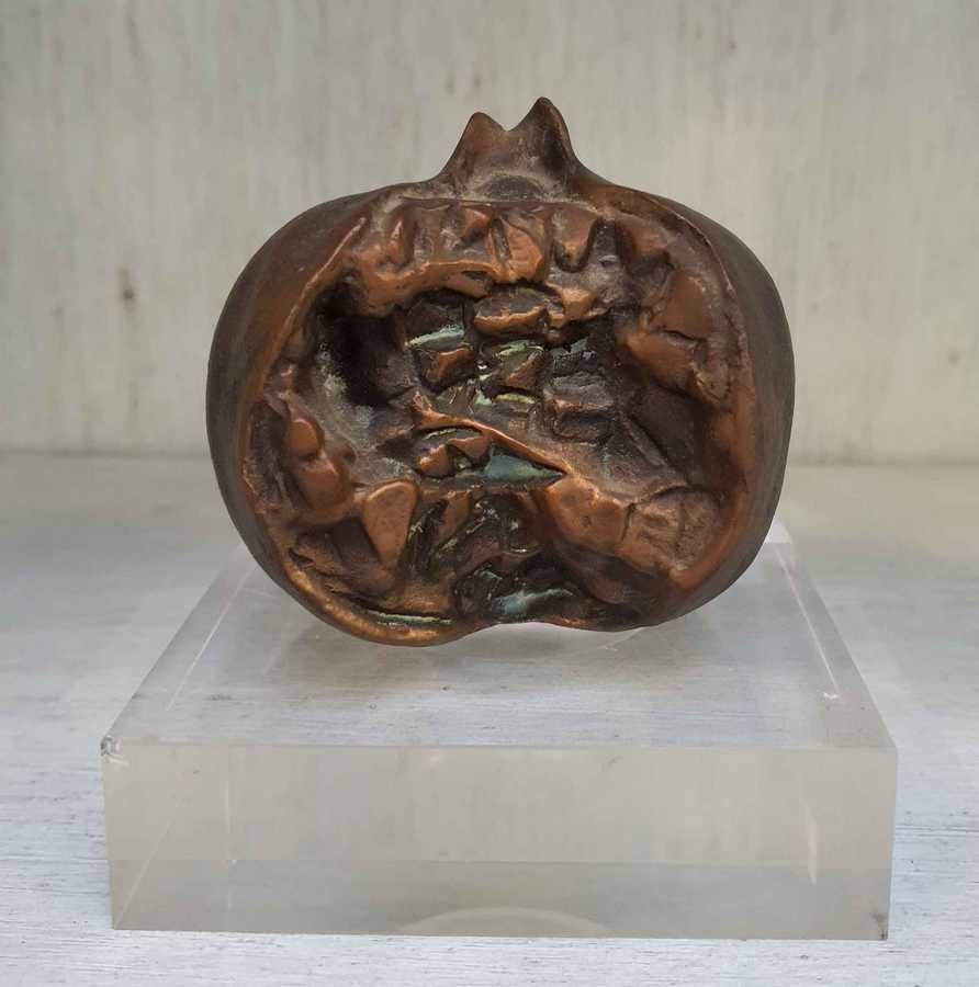 Scultura in bronzo raffigurante un melograno. Base in plexiglass realizzata da Lino Sabattini (h cm 8)
