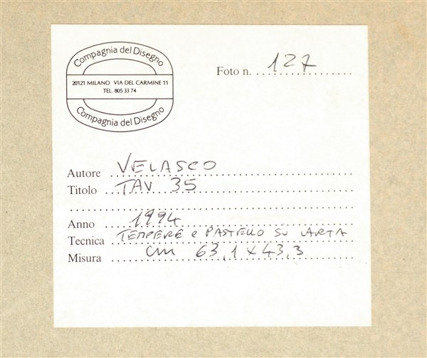 Lotto 2917 | Velasco Vitali "Senza titolo" 1994 tempera e pastello su carta, cm 62x45 Firmato