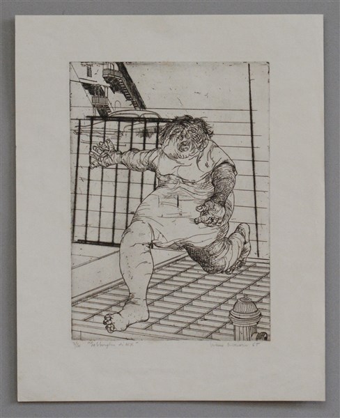 Nino Aimone "Sobborghi di N.Y." 1965 acquaforte (lastra cm 34,5x24,5; foglio cm