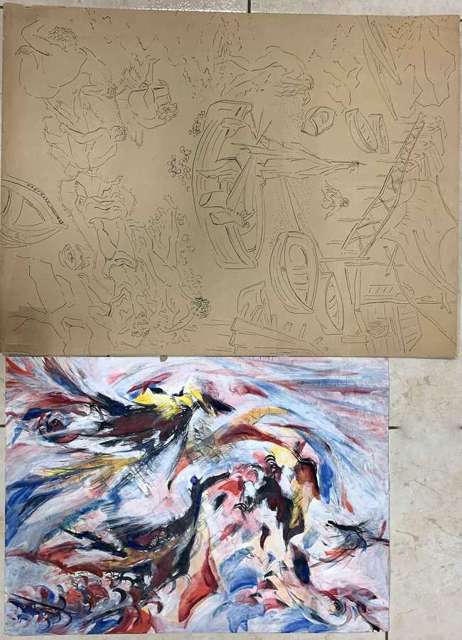 lotto composto da una tempera e un disegno a china (uno firmato)