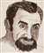Enrico Baj China acquerellata su carta 43,5x38,5 Ritratto di Joe Mantegna Autentica dell'artista su foto