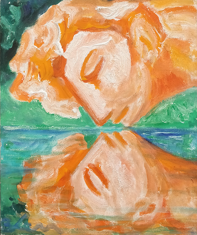 Carlo Levi Olio su tela 46x38 Narciso 1974 Firma in basso a sx