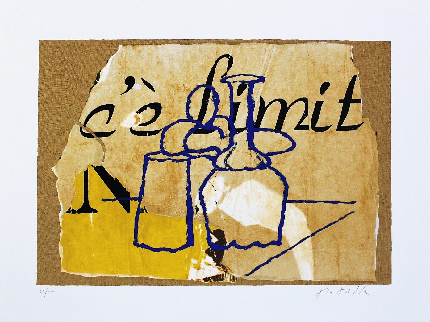 ROTELLA MIMMO Catanzaro 1918 – Milano 2006 "Morandiana" multiplo, serigrafia a colori dècollage cm 60x80. Firma in basso a destra e tiratura 62/100 in basso a sinistra. Certificato Spirale arte (MI).