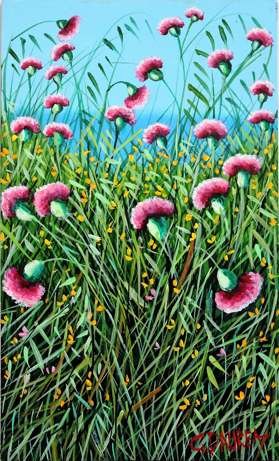DAUREA GIOVANNI Caltanissetta 1955 "Cardi e mare blu" olio su tavola cm 15x25 del 2018 firma in basso a destra. Sul retro timbro dello studio con archivio, dati e firma. Autentica su foto a cura dell’artista.