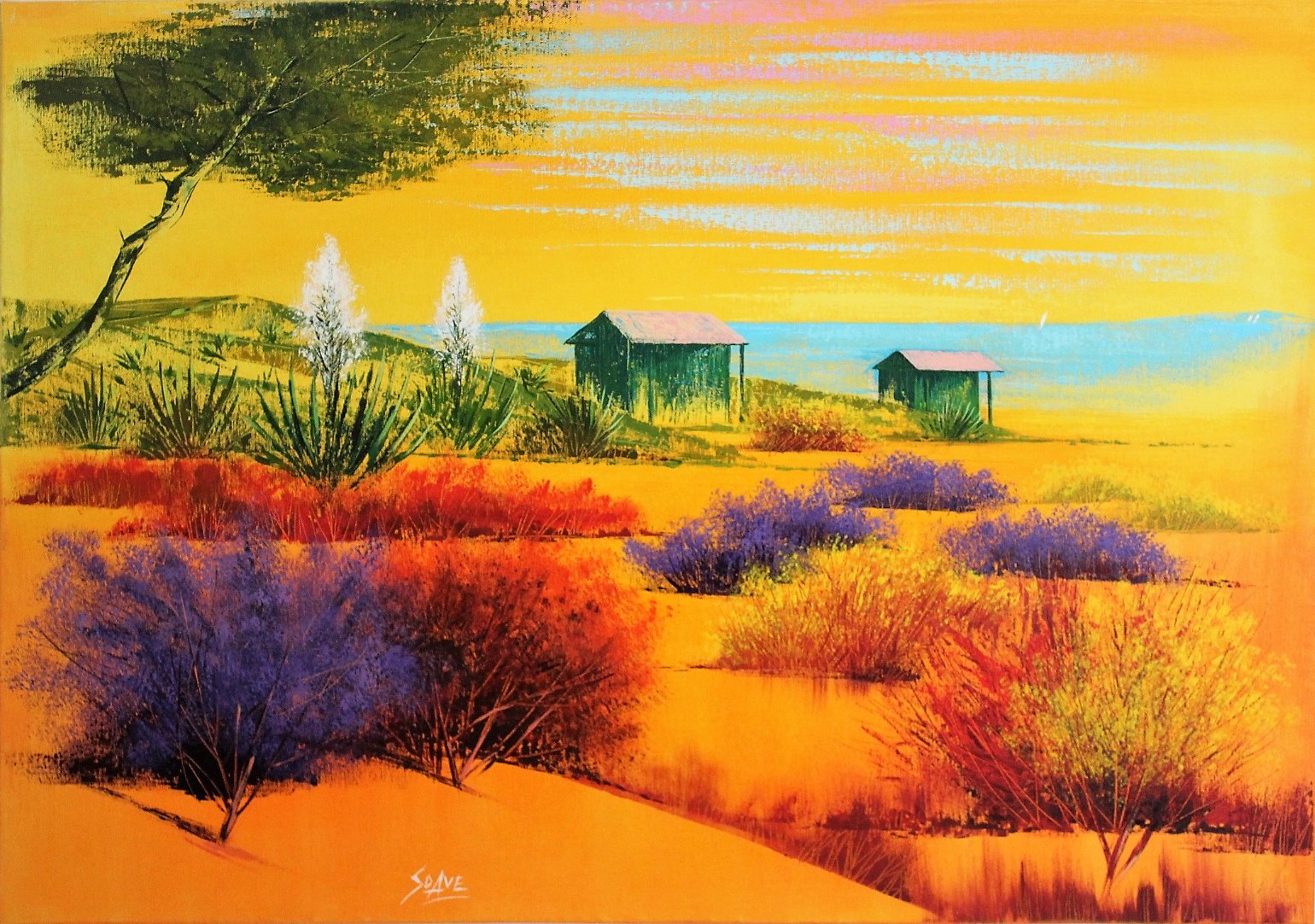 SOAVE MARIO Lucca 1955 “Versilia” tecnica mista su tela cm 70x100, firmato in basso al centro. Autentica su foto.