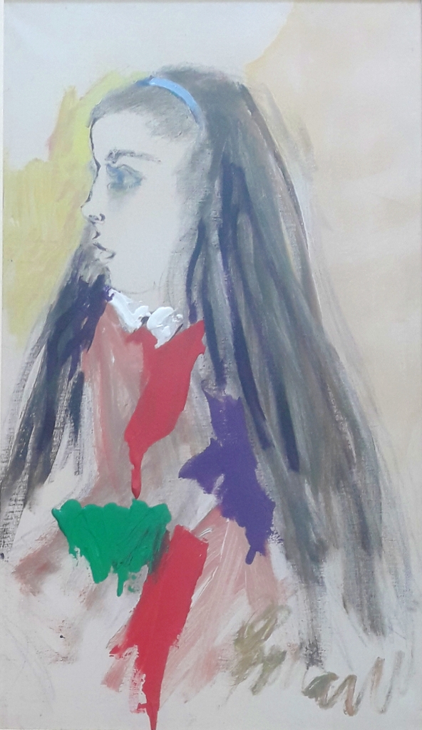 GOTTARELLI TONINO Imola 1920 - Imola 2007 “Figura in rosso” olio su tela cm 40x70 del 1990. Sul retro firma ed etichetta della galleria Giorgio Ghelfi.