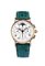 Quadrante bianco, numeri romani, indicazione della cronografia, data e fasi della luna