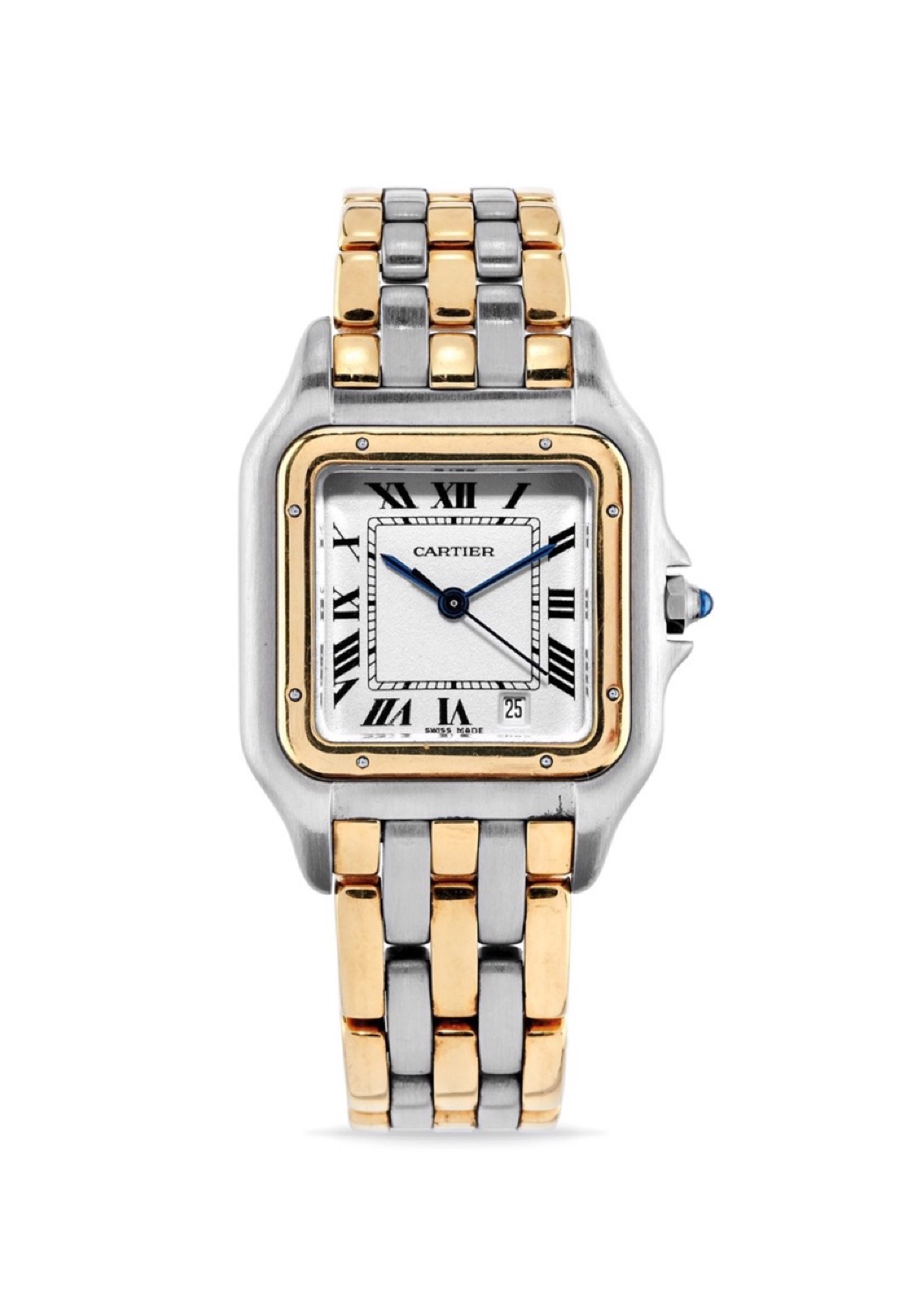 Dimensioni: 27 x 27 mm Cassa quadrata in acciaio, lunetta in oro 18k