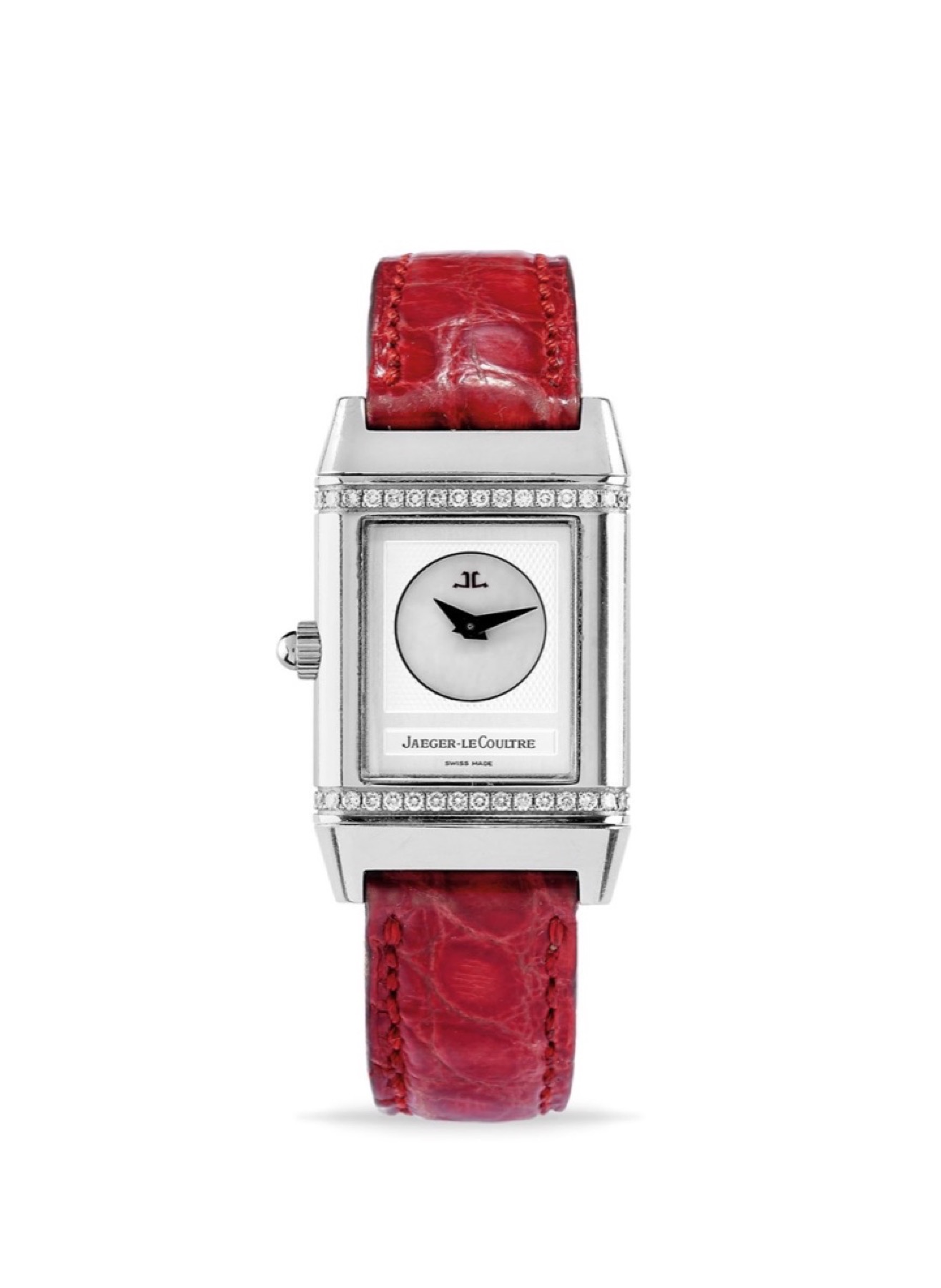 Accompagnato da scatola, garanzia e libretti JLCCassa rettangolare reversibile in acciaio, settata con diamanti su un lato