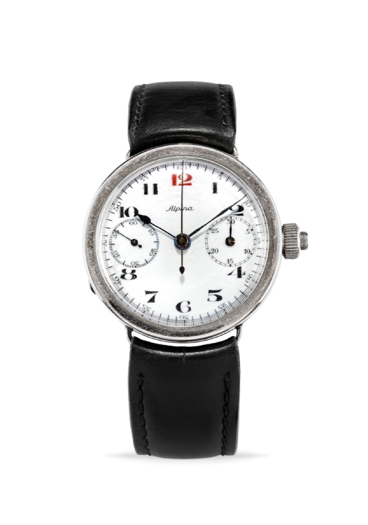 Dimensioni: 32 mm Cassa rotonda in argento, monopulsante integrato nella corona