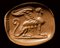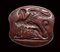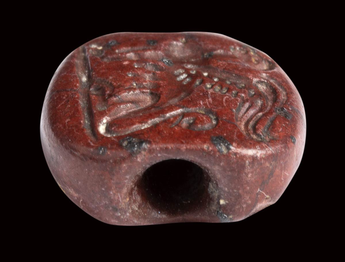 An archaic greek red jasper engraved seal. Seated sphinx.