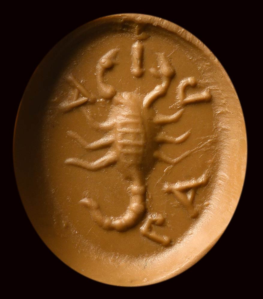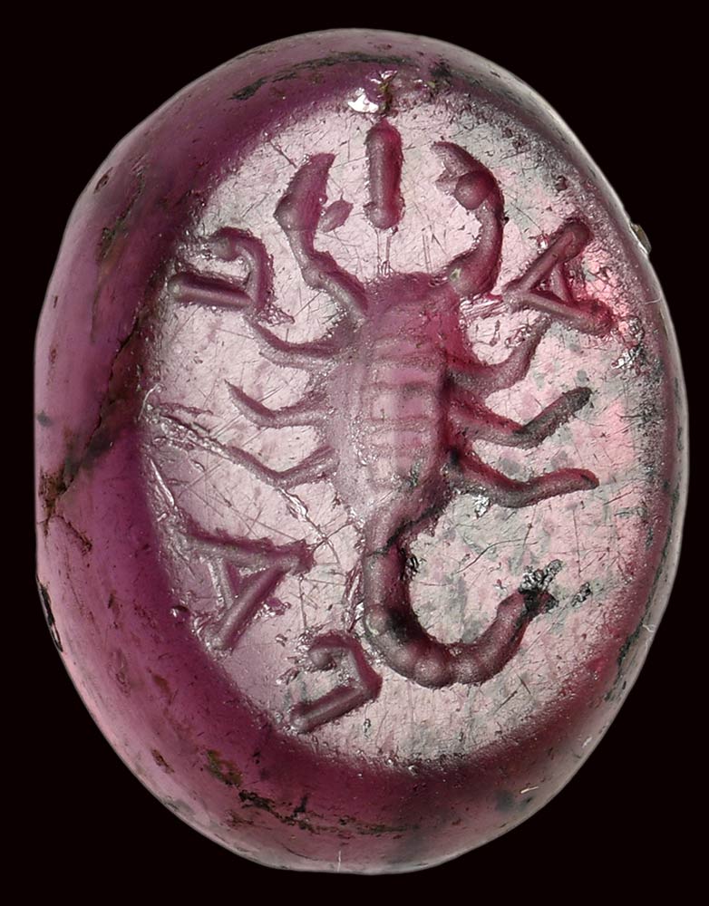 The insect is surrounded by letters: PA - P- I -A . Emblema. The backside of the stone is concave. Use of globular elements. Slight wear marks. Attractive color of the stone.