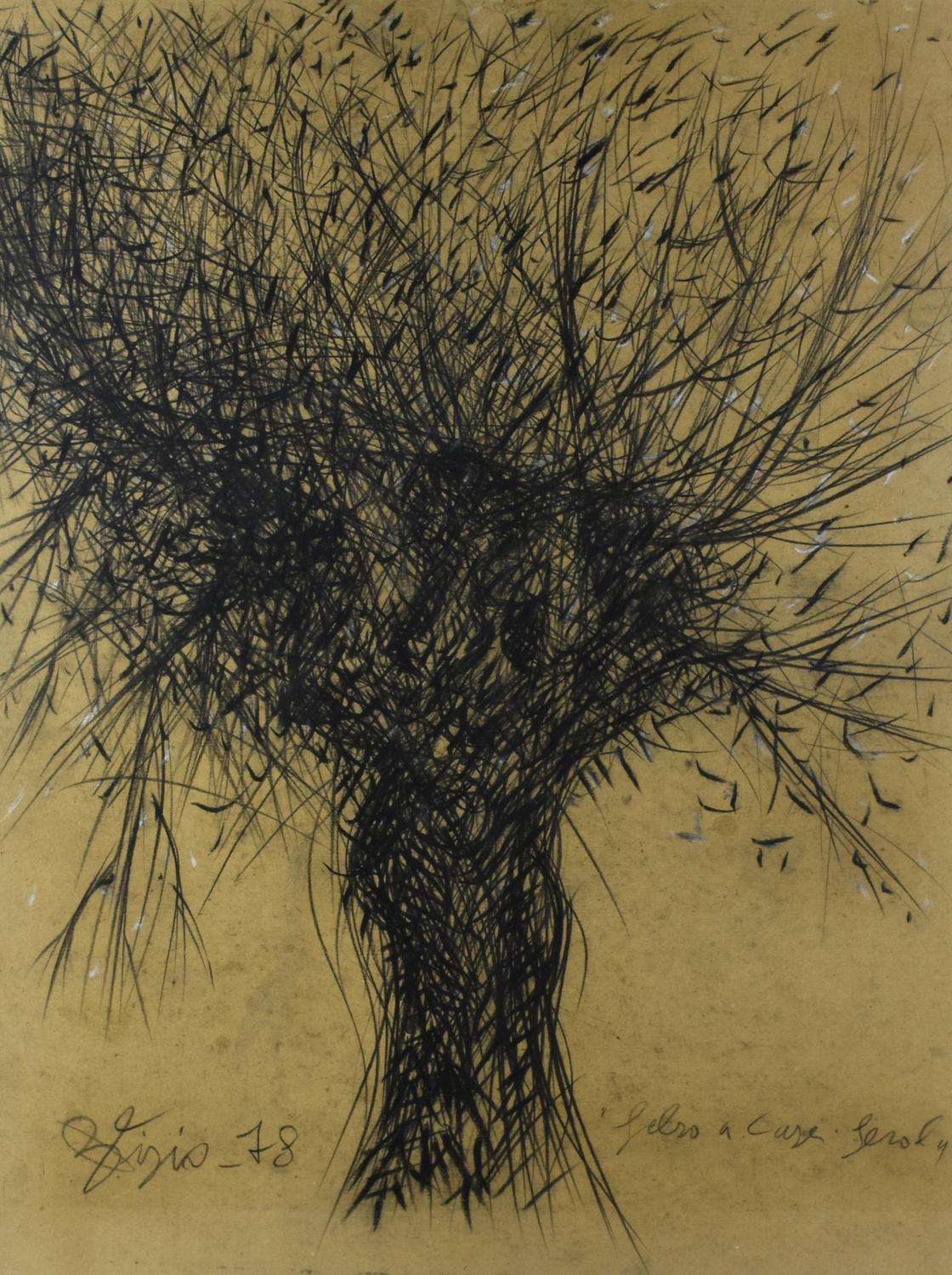 Pietro Bisio GELSO A CASEI GEROLA tecnica mista su carta applicata su tavola,...
