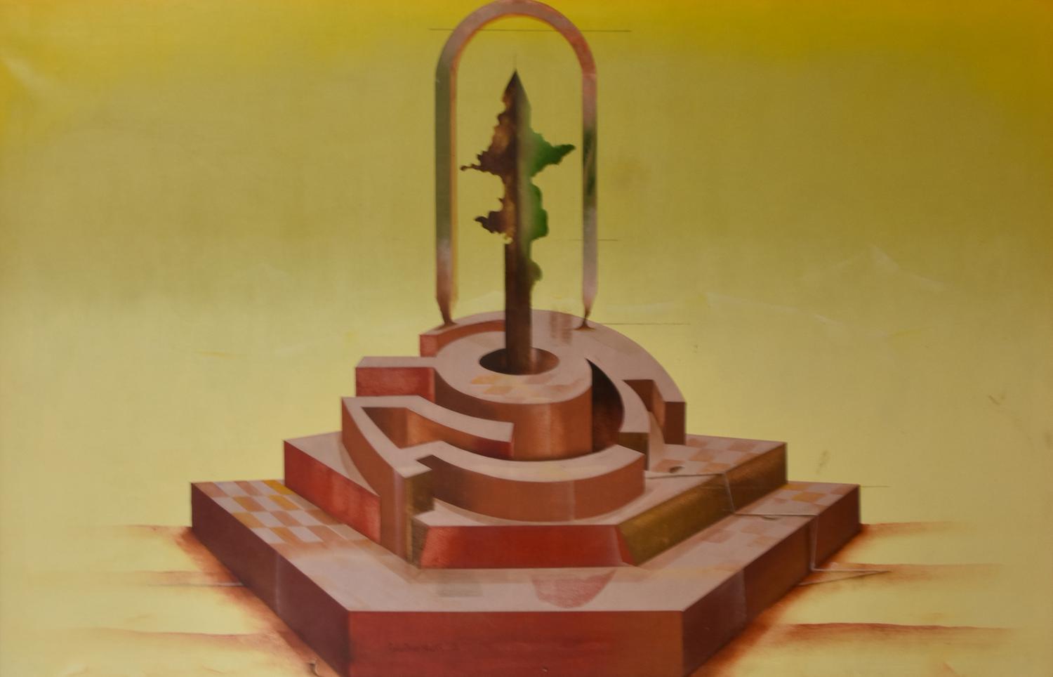 Cesare Paolantonio IL CENTRO DEL LABIRINTO olio su tela, cm 85x140 firma e...