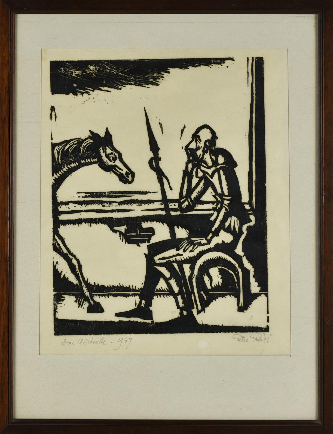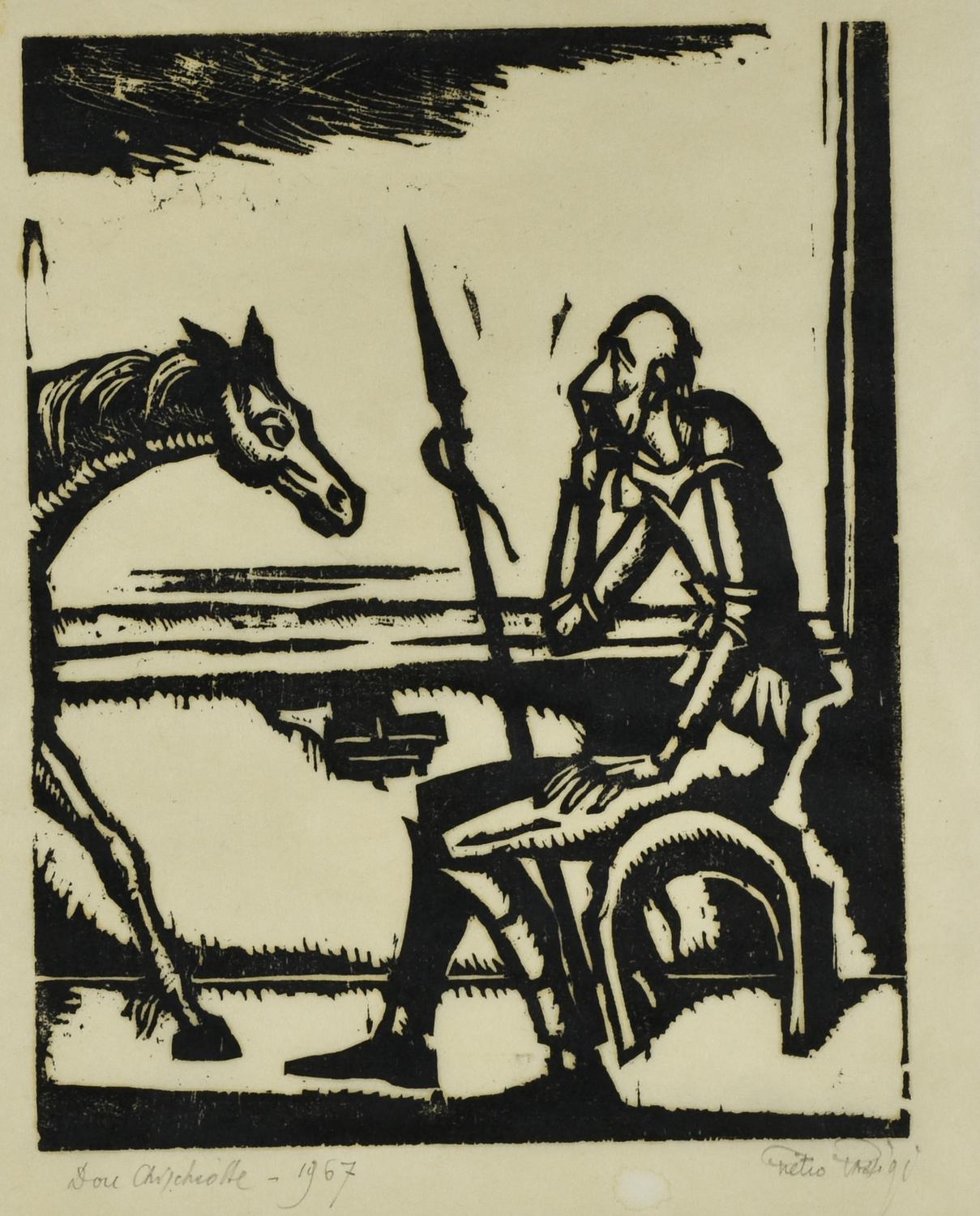 Pietro Parigi DON CHIQUOTTE xilografia su carta, cm 26,5x20,5 firma, titolo e...