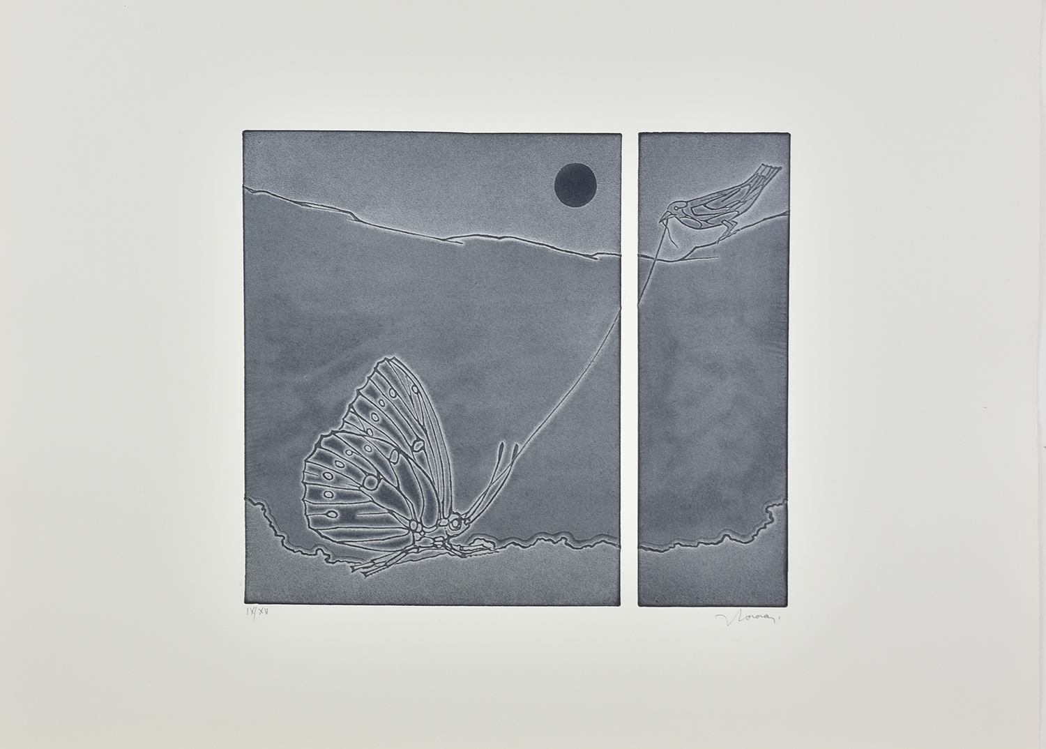 Francesco Casorati FARFALLA GRIGIA incisione su carta, battuta cm 30x36, su...