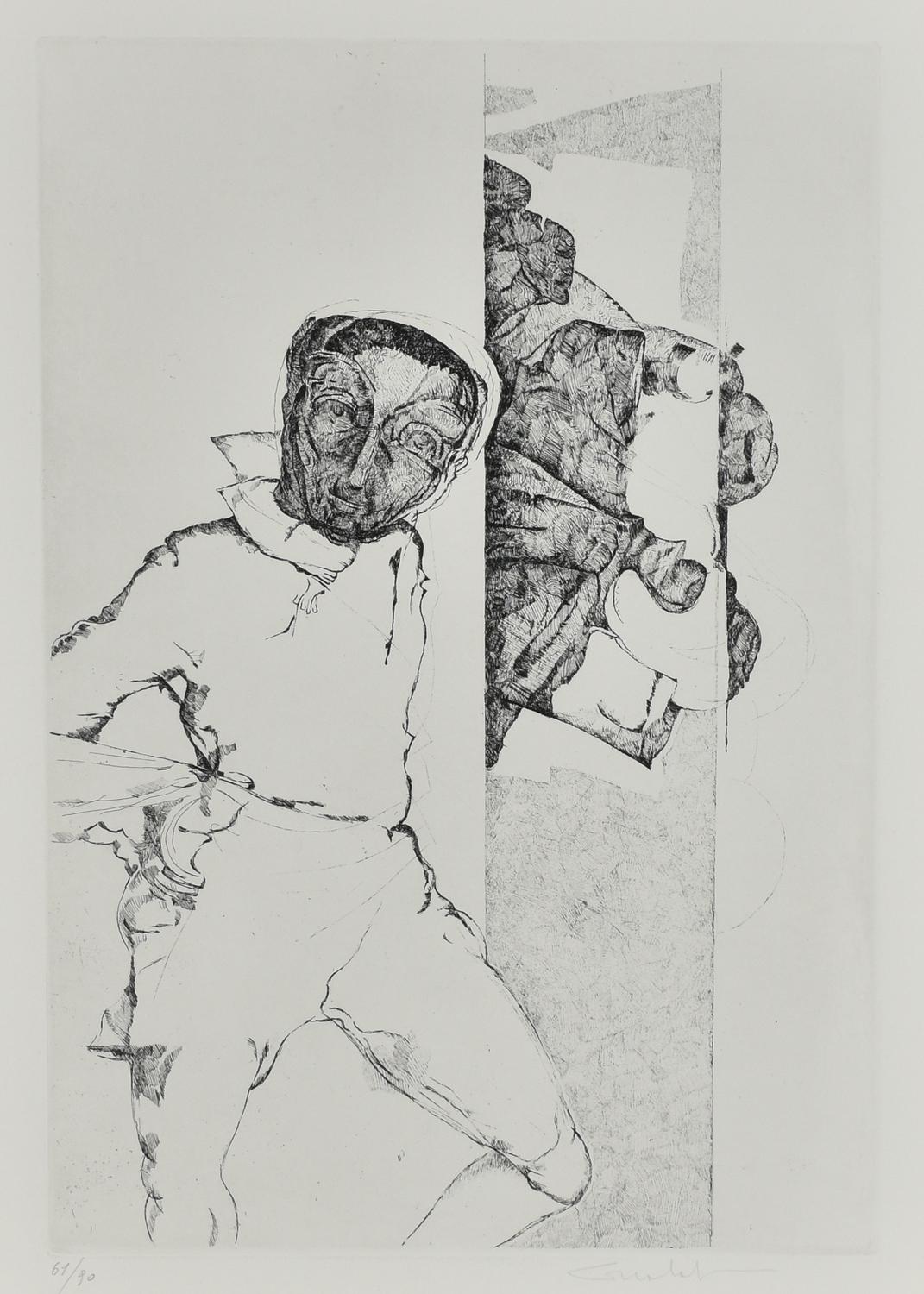 - L'UOMO, acquaforte su carta, battuta cm 50x32; es. 61/90; firma