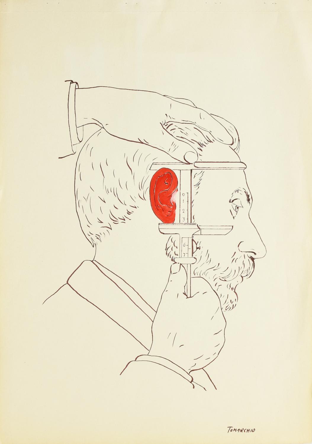Michelangelo Tomarchio Levi UOMO CON ORECCHIO ROSSO tecnica mista su carta,...