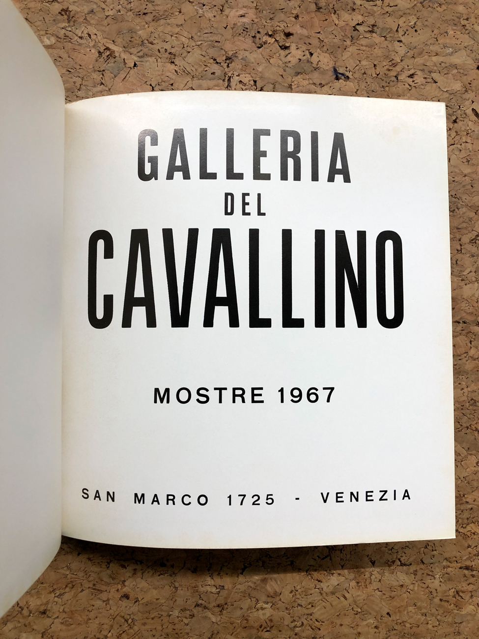 Raccolta di cataloghi originali, rilegati editorialmente, pubblicati in occasione delle mostre allestite presso la Galleria del Cavallino, Venezia, dal 10 Gennaio 1967 all'8 Gennaio 1968 (dalla 657a alla 676a Mostra)