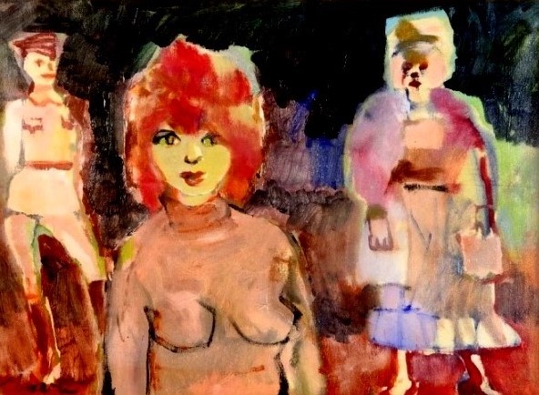 Mino Maccari (Siena, 1898 – Roma, 1989) "Personaggi" ‘70 olio su tela cm 40x55 firmato in basso a sinistra opera accompagnata da autentica su fotografia, Provenienza: Collezione privata