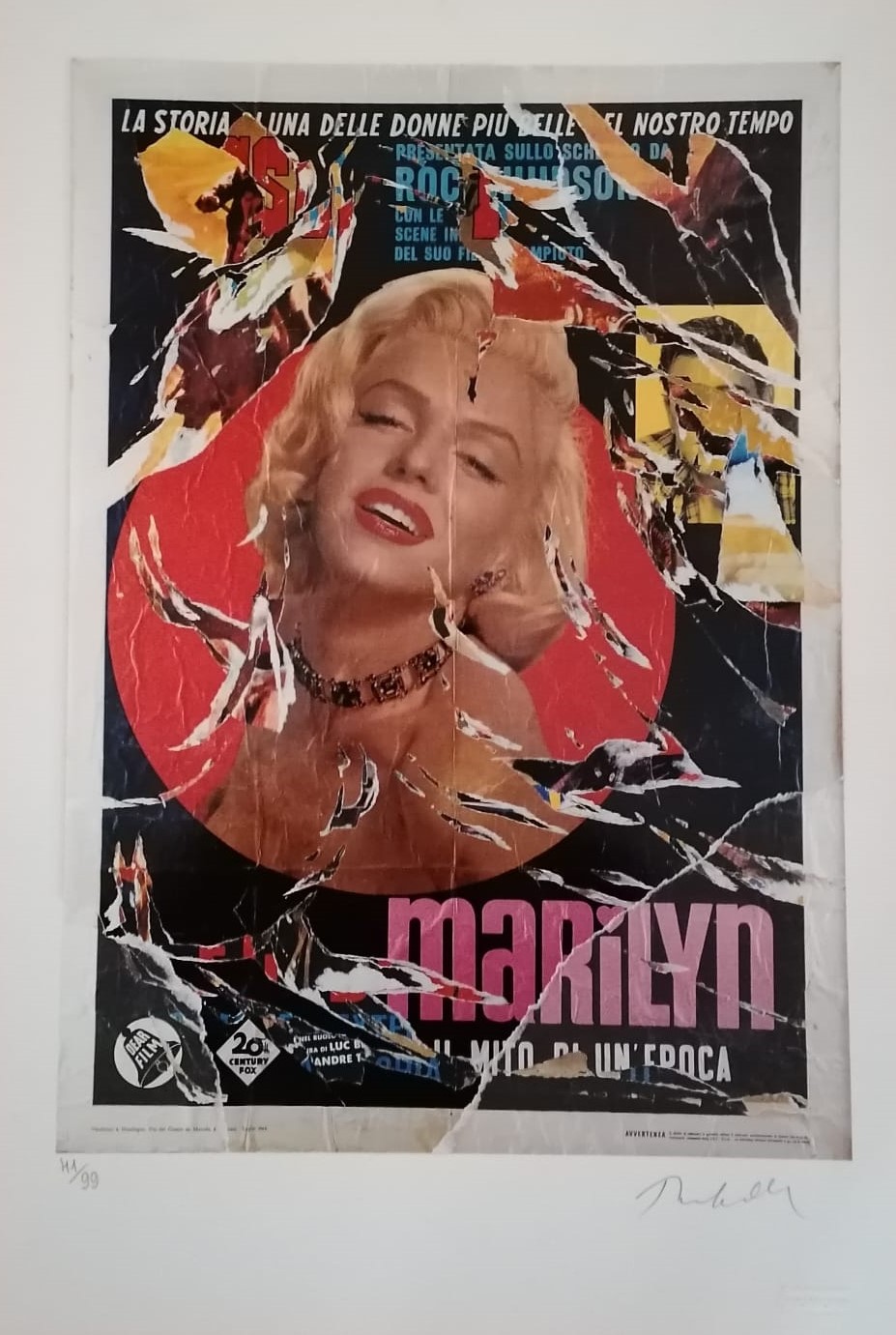 Mimmo Rotella (Catanzaro 1918 – Milano, 2006) "Marilyn - il mito" multiplo, decollage cm 70x50, es. 41/99 Proveniente dal libro “Marilyn bellezza eterna” di Mimmo Rotella e Alda Merini Certificato di autenticità Ethos Bologna