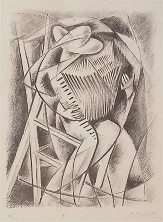 Alessandro Bruschetti (Perugia 1910 - Brughero 1960) "Suonatore di fisarmonica" litografia cm 42,5x31 firmata in basso a destra numerata 33/50
