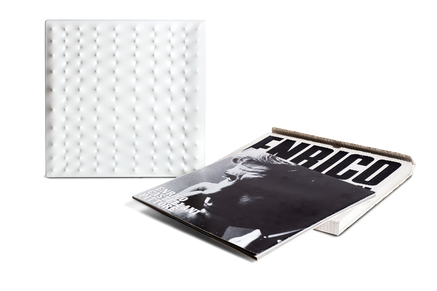 Il multiplo è accompagnato dal volumeEnrico Castellani pittore, con testo di Vincenzo Agnetti e foto di Giorgio A. Colombo, Franco Angeli, Ugo Mulas e Uliano Lucas.