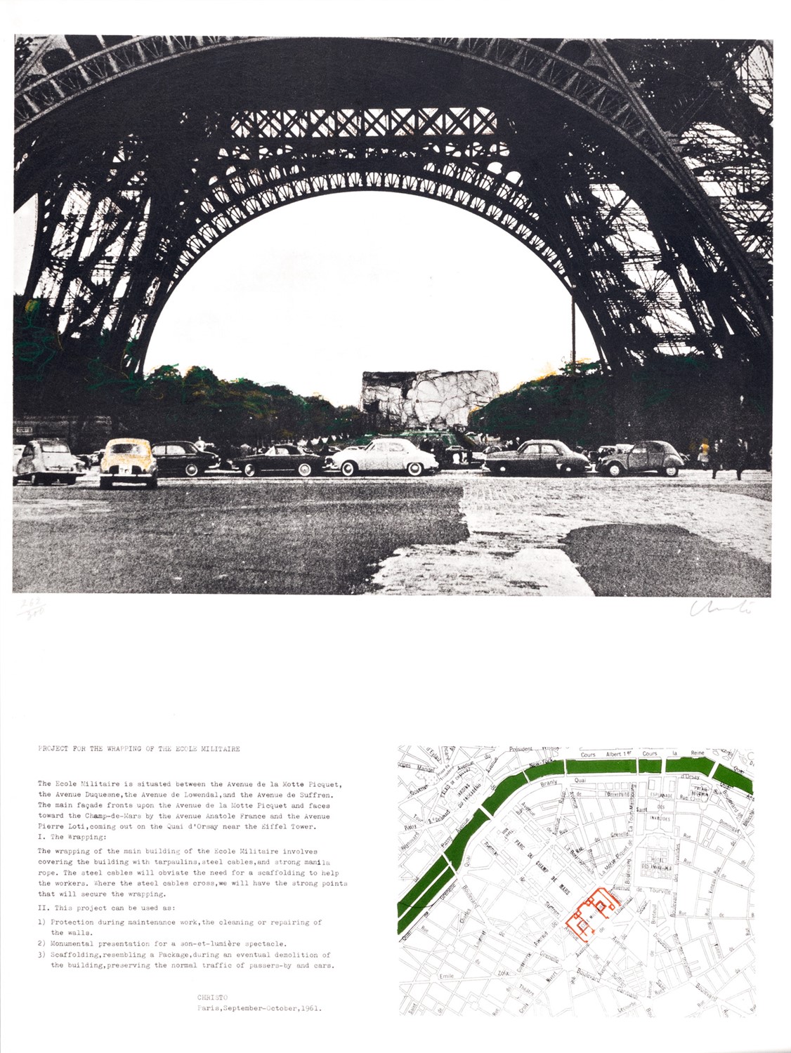 Christo e Jeanne Claude (Gabrovo, 1935 – New York 2020-Casablanca, 1935 – New York, 2009) - Packed Building, Project for the Ecole Militaire, Paris, 1970
