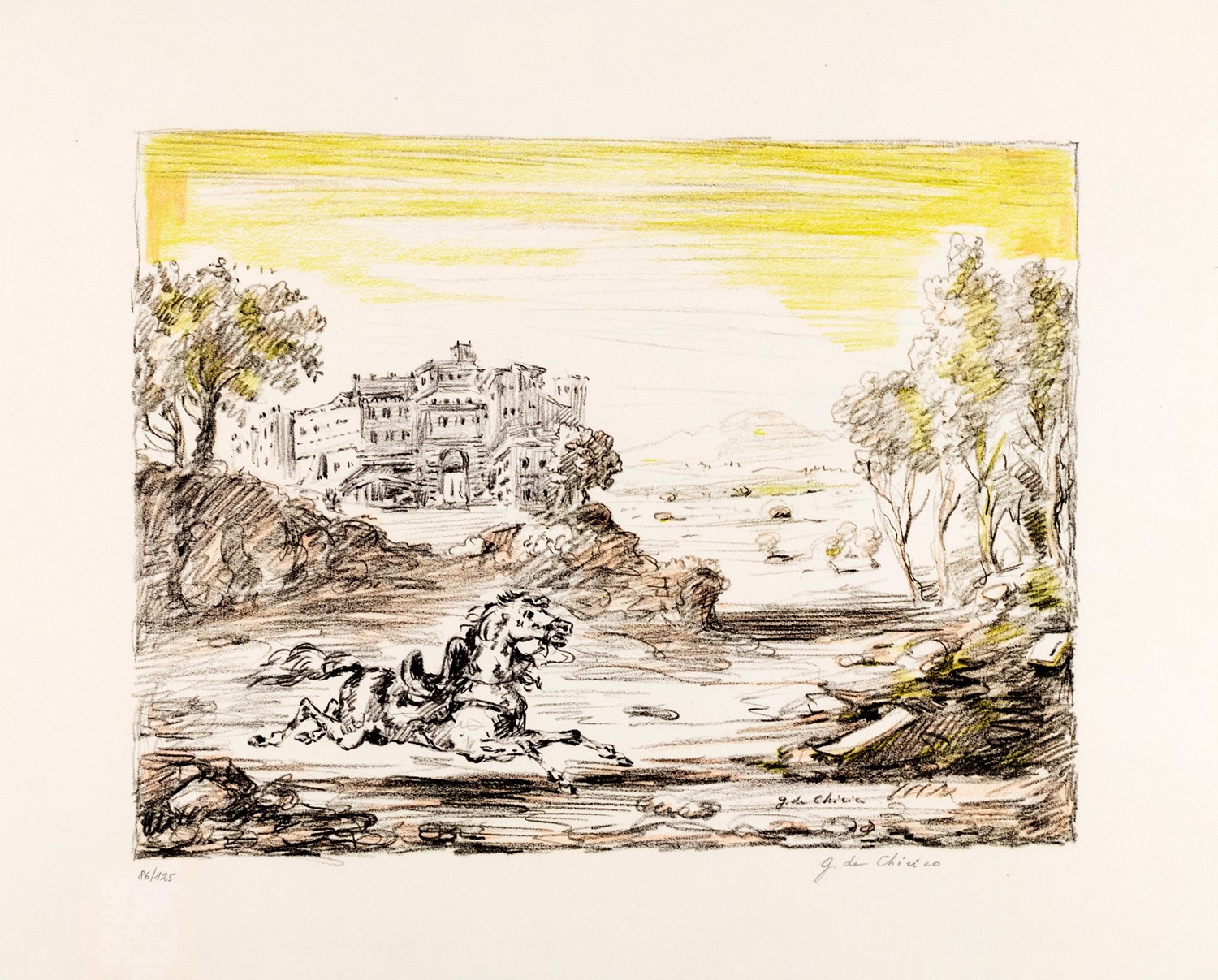 Giorgio de Chirico (Volos 1888-Roma 1978) - Cavallo fuggente, 1954