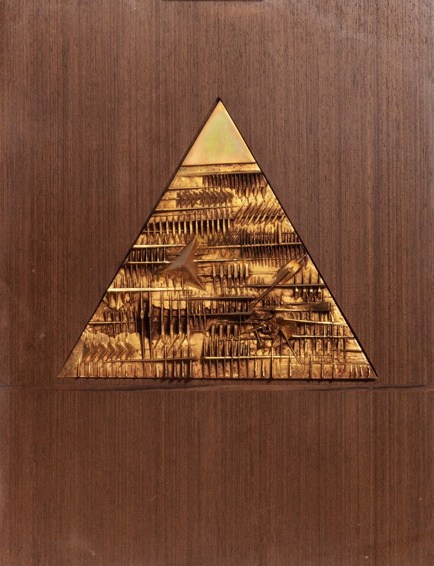 cartella contenente 8 incisioni all'acquatinta entro custodia in legno con scultura in bronzo dorato al piatto, es. 63/99 (dalla tiratura complessiva di 130 ess.)