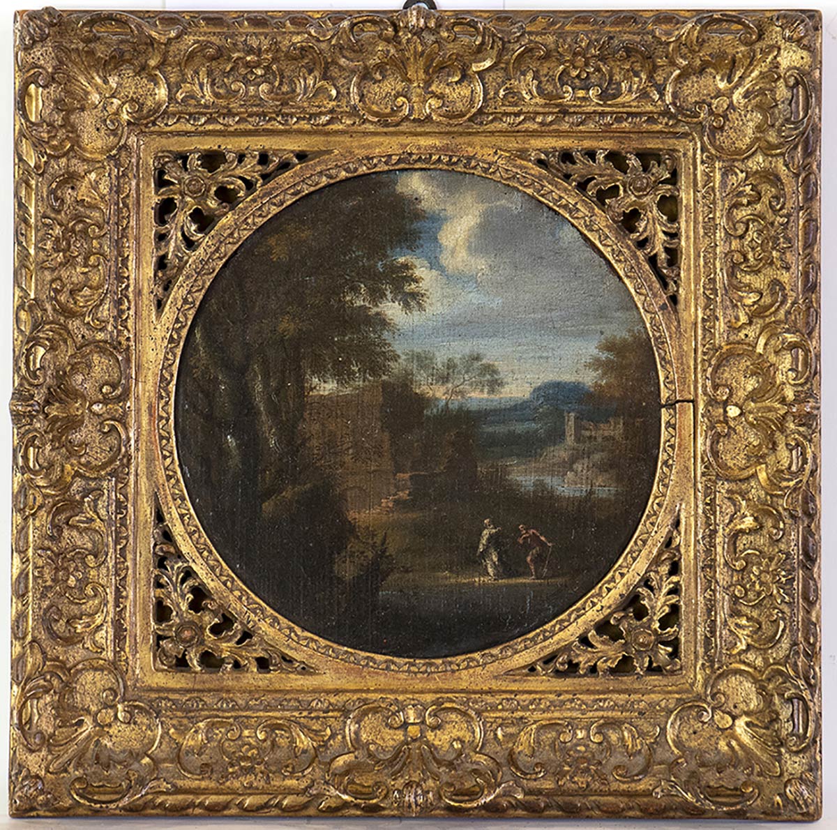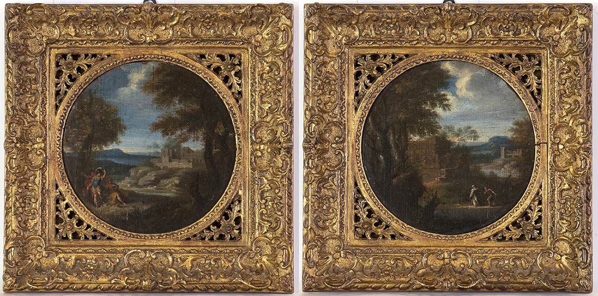 Lotto 77 | Paesaggi con figure e architetture. Coppia di dipinti
