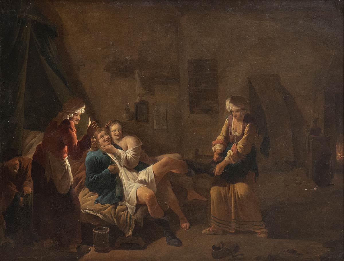 Avventore di bordello denudato da due meretrici