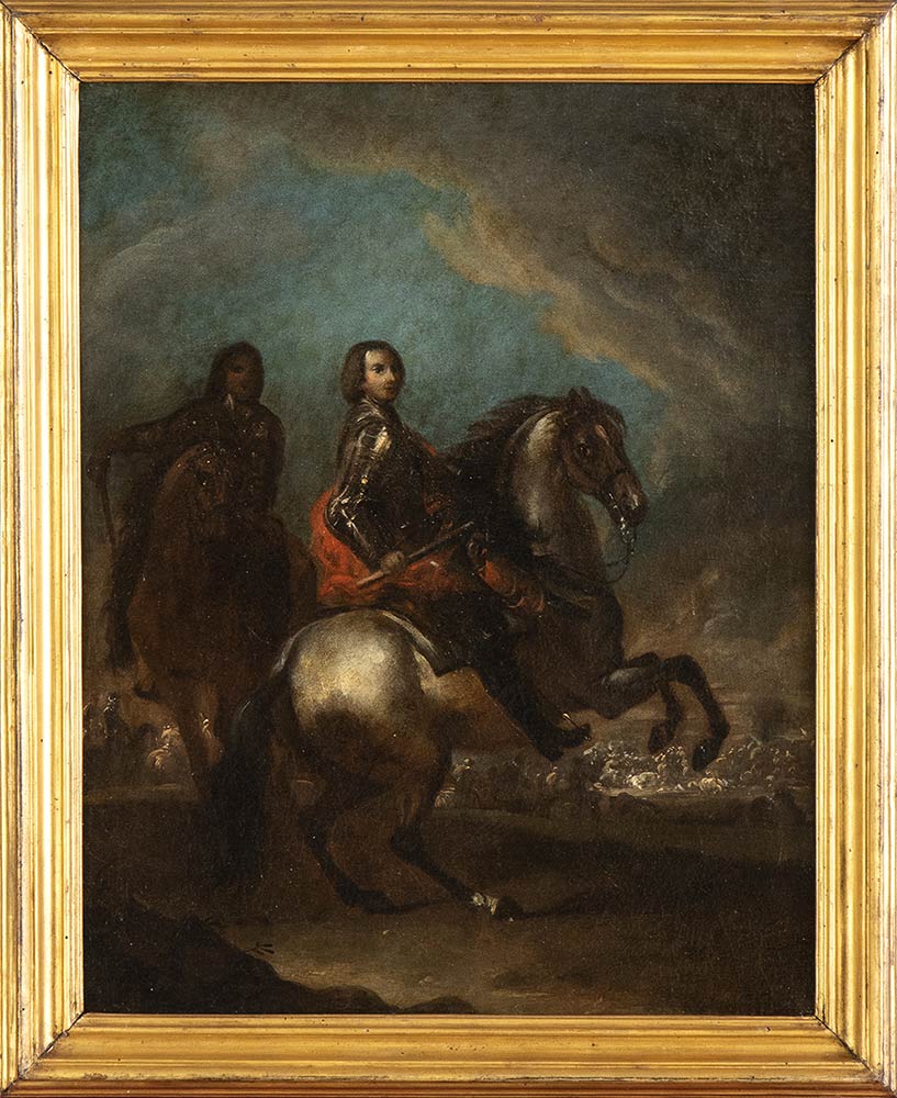Lotto 92 | Condottiero a cavallo con scontro di cavallerie sullo sfondo