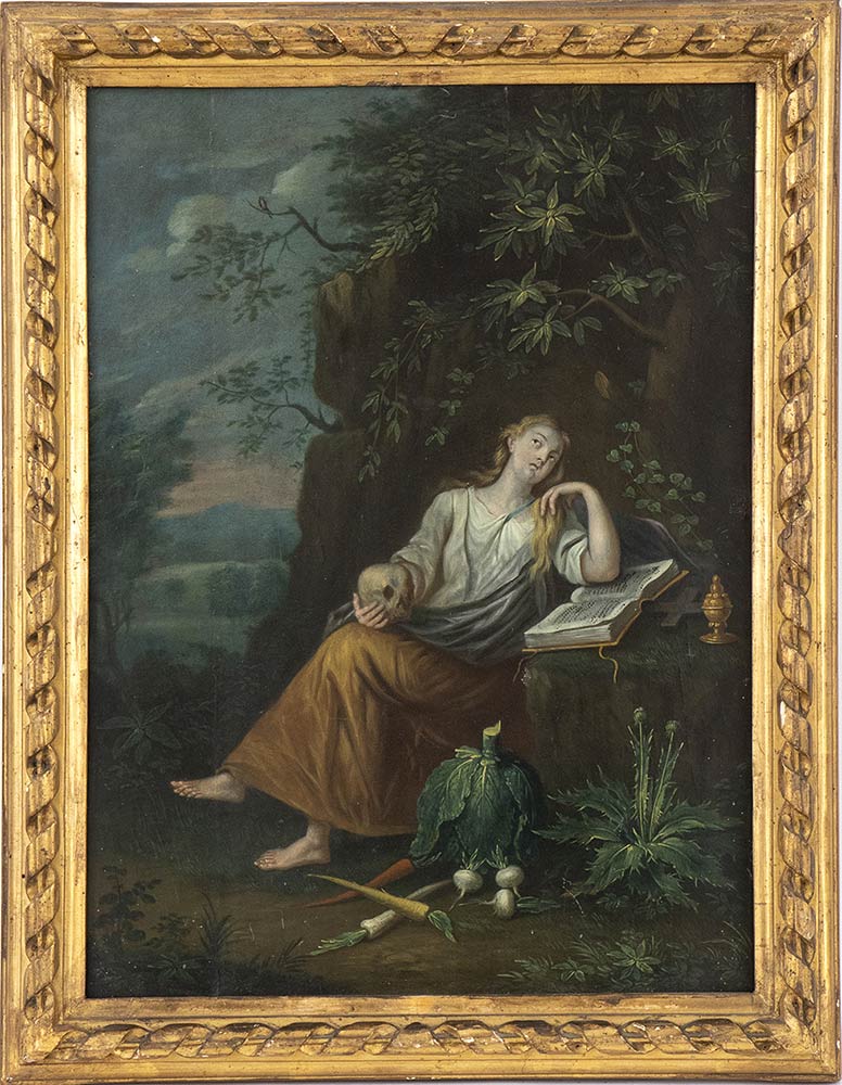 Maddalena penitente con natura morta di ortaggi in primo piano